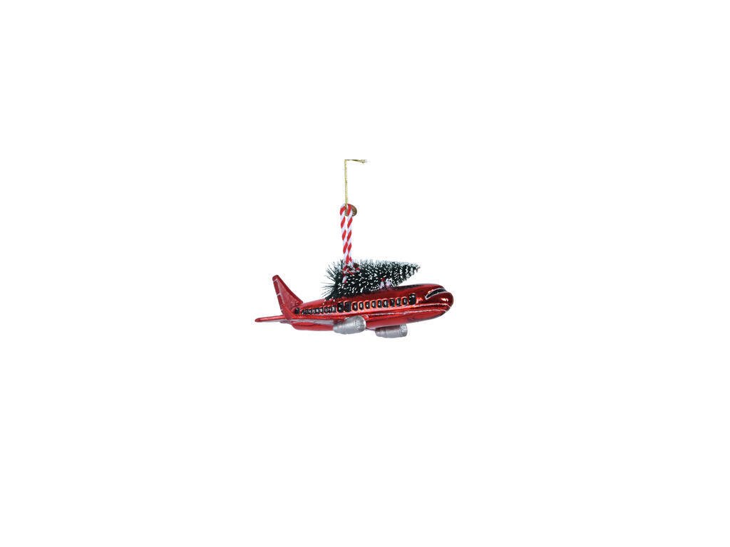 Vánoční ozdoba LETADLO, 15,9 cm, červené, KSD