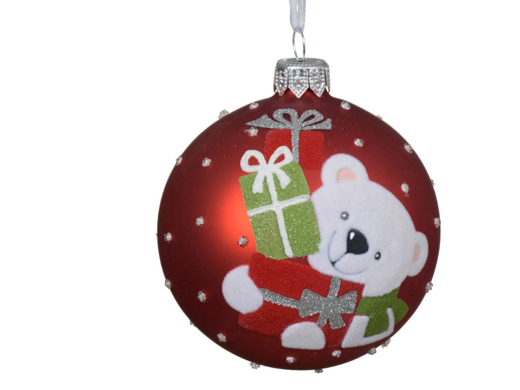 Vánoční ozdoba MÉĎA S DÁRKEM, 8 cm, červená, KSD