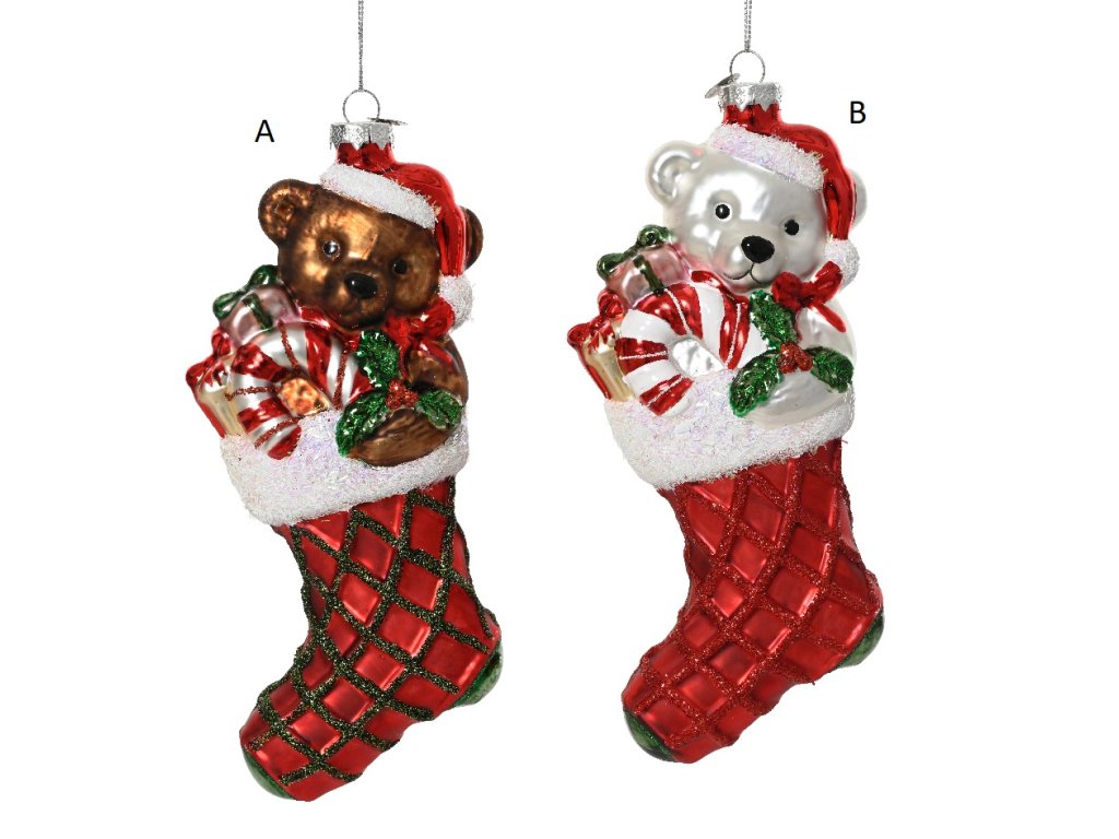 Vánoční ozdoba MÉĎA V PUNČOŠE, 10,9x5,5x18,5 cm, 2 druhy, KSD