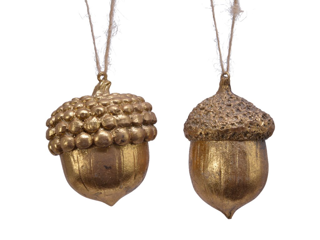 Vánoční ozdoba ŽALUD, 4x8 cm, 2 kusy, zlatý, KSD