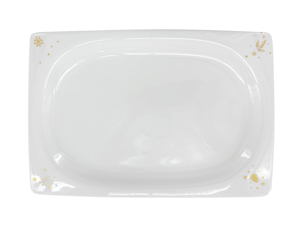 Vánoce jsou časem, kdy dáváme. Ať už jde o dárky, nebo o sváteční pohoštění pro naše nejbližší. A právě k dokonalé prezentaci vašich kulinářských výtvorů jsme vytvořili tento porcelánový servírovací tác z kolekce Zlatá Koleda. S velkorysými rozměry 35 x 23 cm se stane dominantou každého stolu, ať už na něj naservírujete voňavé vánoční cukroví, sušené ovoce, nebo drobné slané dobroty.
