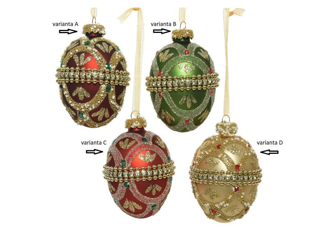 Vánoční skleněná ozdoba EGG, 8 cm, 4 druhy, KSD 1 kus