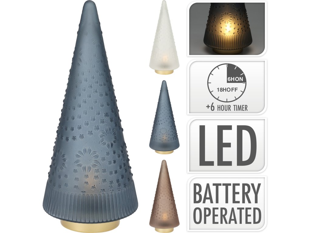 Stromek je vyroben z kvalitního skla, které zajišťuje jeho odolnost a dlouhou životnost. Váš nový vánoční klenot je vybaven teplou bílou LED diodou, která vytváří útulnou atmosféru ve vašem domově. Pro jeho provoz jsou potřeba 2 baterie typu AAA, které nejsou součástí balení.