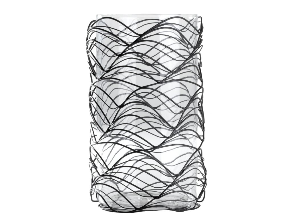 Váza se skládá ze dvou samostatných částí - drátěného obalu a skleněného vnitřního válce.
