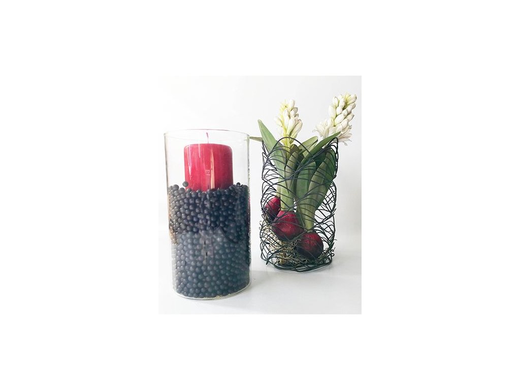 Můžete tedy využít samostatně pouze skleněnou vázu na květiny a drátěný bal zase např. na ořechy či ovoce.
