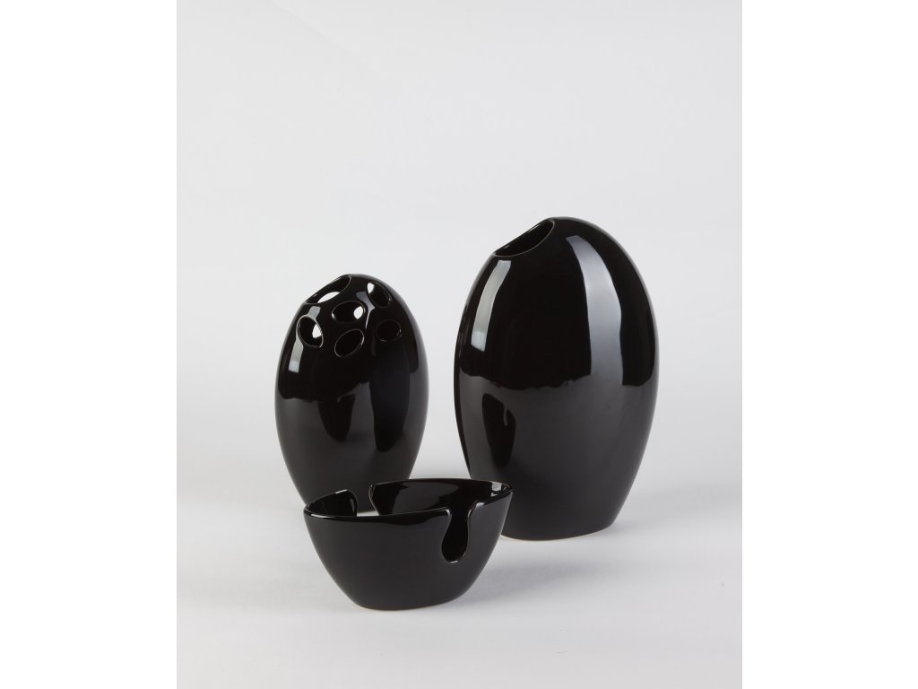 Jednoduchá váza ve tvaru vajíčka s otvorem rafinovaně navrženém na stranu. Ideální na kytice převislého tipu.