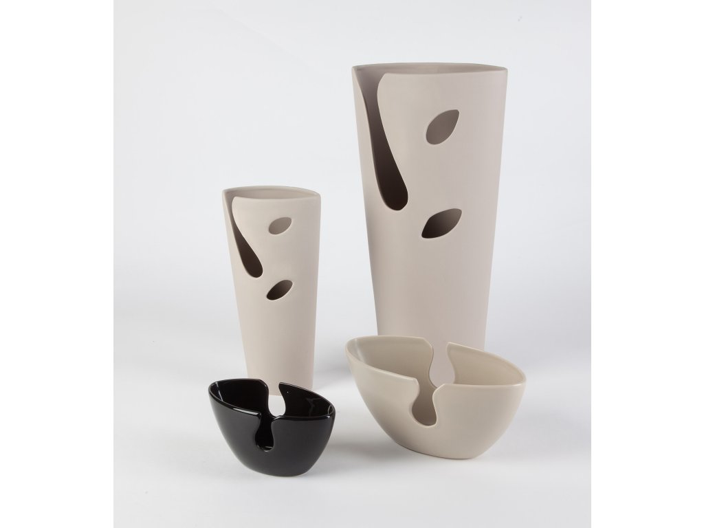 Originální váza s průřezem a otvory. Kolekce Hole navržena českými designéry v zemitých barvách.