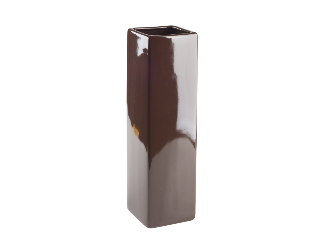 Keramická váza "Quadro" v lesklé hnědé barvě, vysoká 29 cm.