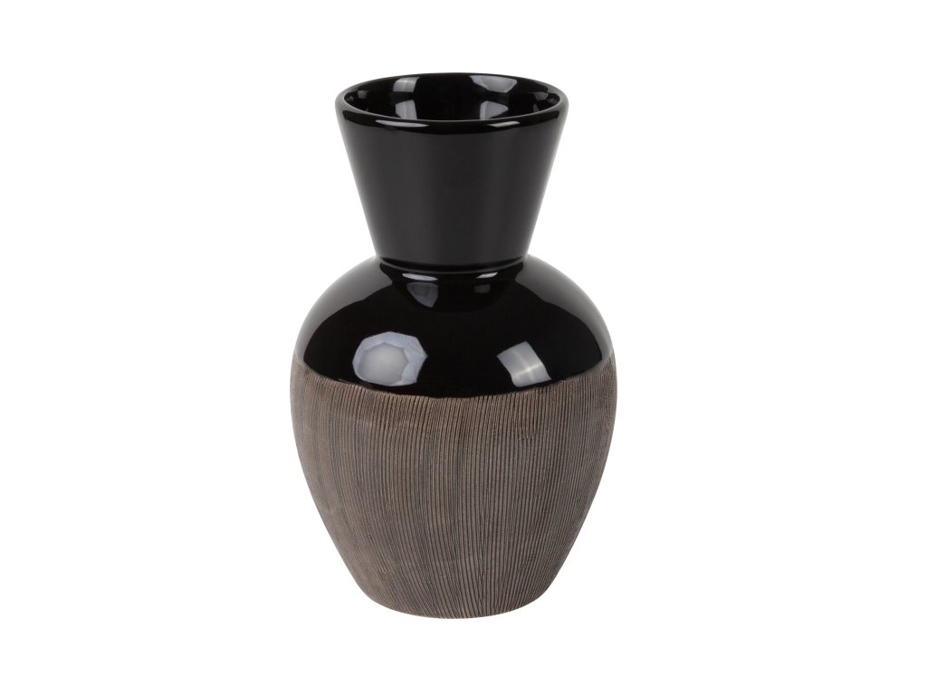 Keramická váza "Rotund add" v barevné kombinaci matné šedé a lesklé černé, vysoká 20cm.