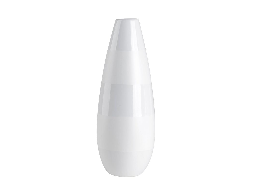 Váza protáhlého soudkového tvaru, v tolik oblíbené bílé barvě.