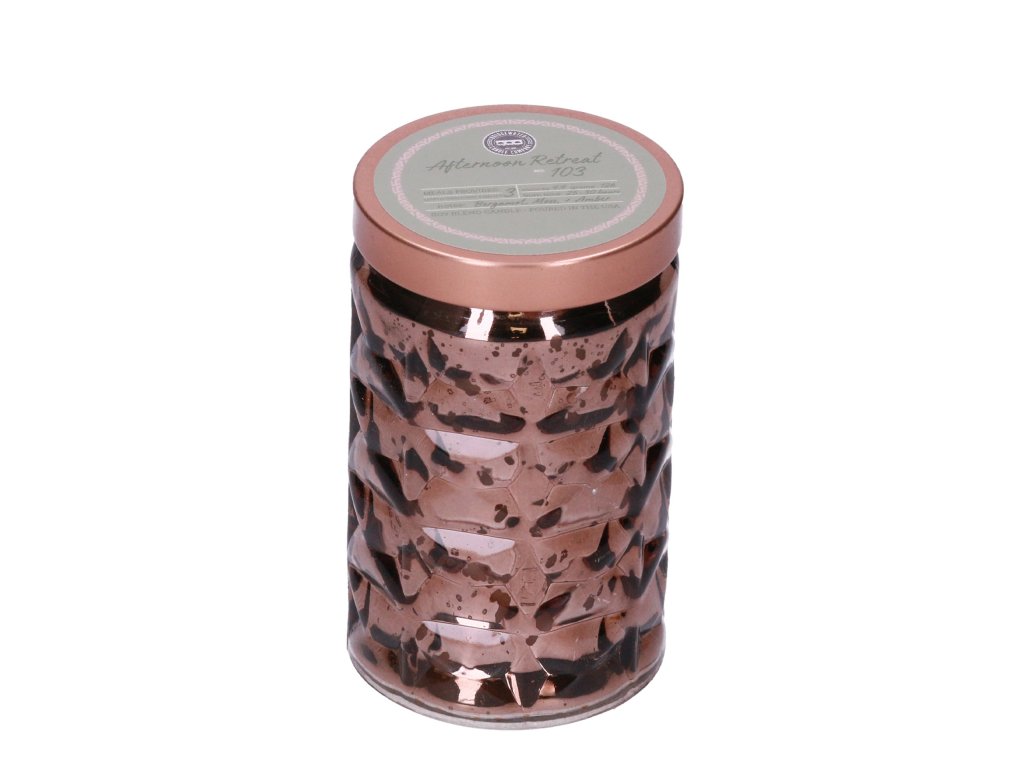 Otevřené tóny mandarinky, bergamotu a limetky s mechem, anýzu a pelargónie ve vonné svíčce Afternoon Retreat. Vonná svíčka vyhoří zcela rovnoměrně tak, že necháte vždy rozpustit vosk až ke kraji dózy. Vrchní vrstva vosku je úplně rozpuštěná a tak se vůně rozvine do svého maxima. Vonná svíčka ve zlaté skleněné dóze je pěkným dárkem, ale i zajímavým bytovým doplňkem a příjemně provoní interiér. Vyrobeno z nejkvalitnějších surovin. Knot se musí zastřihávat na 3 mm. Hmotnost 126 g, doba hoření až 25 – 30 hodin. Popis vůně: hlava-mandarinka, čerstvý bergamot, limeta, srdce-měkký mech, anýz, pelargonie, základ-teak, santalové dřevo, ambra.