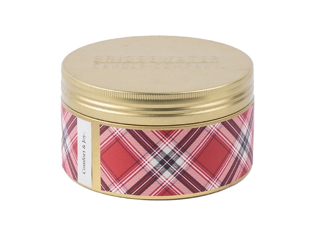 Vylepšete si sváteční atmosféru s naší vánoční tříknotou svíčkou v okouzlující kulaté plechovce s luxusním zlatým povrchem. Tato svíčka, ozdobená klasickým kostkovaným motivem, dodá každému prostoru sváteční kouzlo. Díky třem knotům a 24hodinové době hoření si můžete užívat hřejivou záři a jemnou vůni po celé Vánoce. Pohodlně se usaďte s vonnou svíčkou Comfort & Joy.