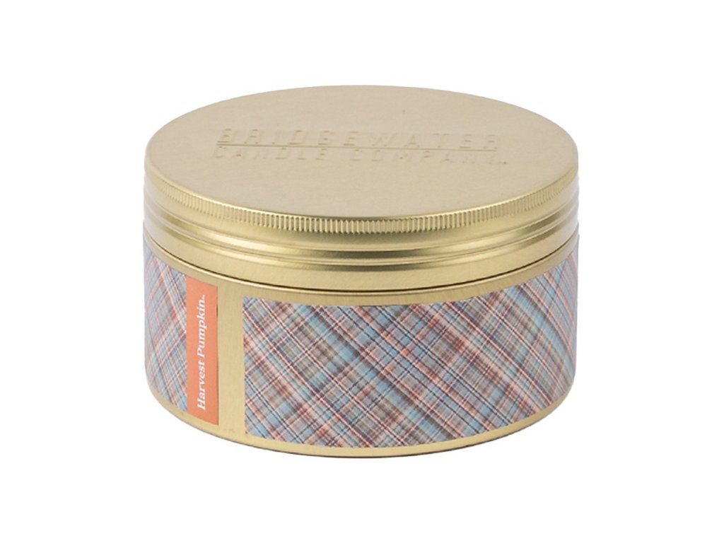 Vylepšete si podzimní atmosféru s naší tříknotou svíčkou v okouzlující kulaté plechovce s luxusním zlatým povrchem. Tato svíčka, ozdobená klasickým kostkovaným motivem, dodá každému prostoru sváteční kouzlo. Díky třem knotům a 24hodinové době hoření si můžete užívat hřejivou záři a jemnou vůni po celý podzim.