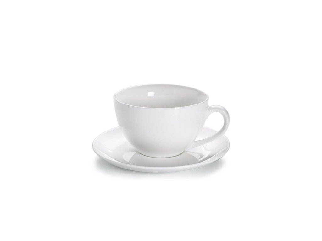 Velký porcelánový šálek s podšálkem na čaj nebo kávu od Maxwell and Williams z kolekce White Basic.