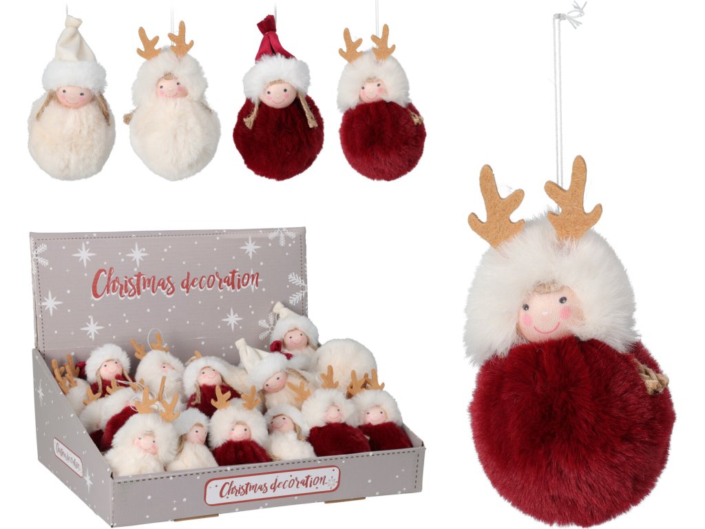Závěsná vánoční ozdoba s motivem usměvavé dívky s čepicí v bordó barvě je nádhernou volbou pro tradiční i moderní vánoční výzdobu. Ozdoba má výšku 13 cm a průměr 7 cm, což z ní činí ideální dekoraci na stromek. Jemné detaily, jako je čepice s bílým lemem a hebká bordó textura, dodávají kouzlo a vytvářejí útulnou vánoční atmosféru.