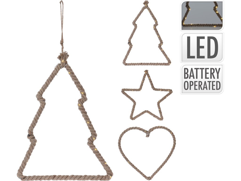 Závěsná dekorace JUTE LED, 25cm, srdce
