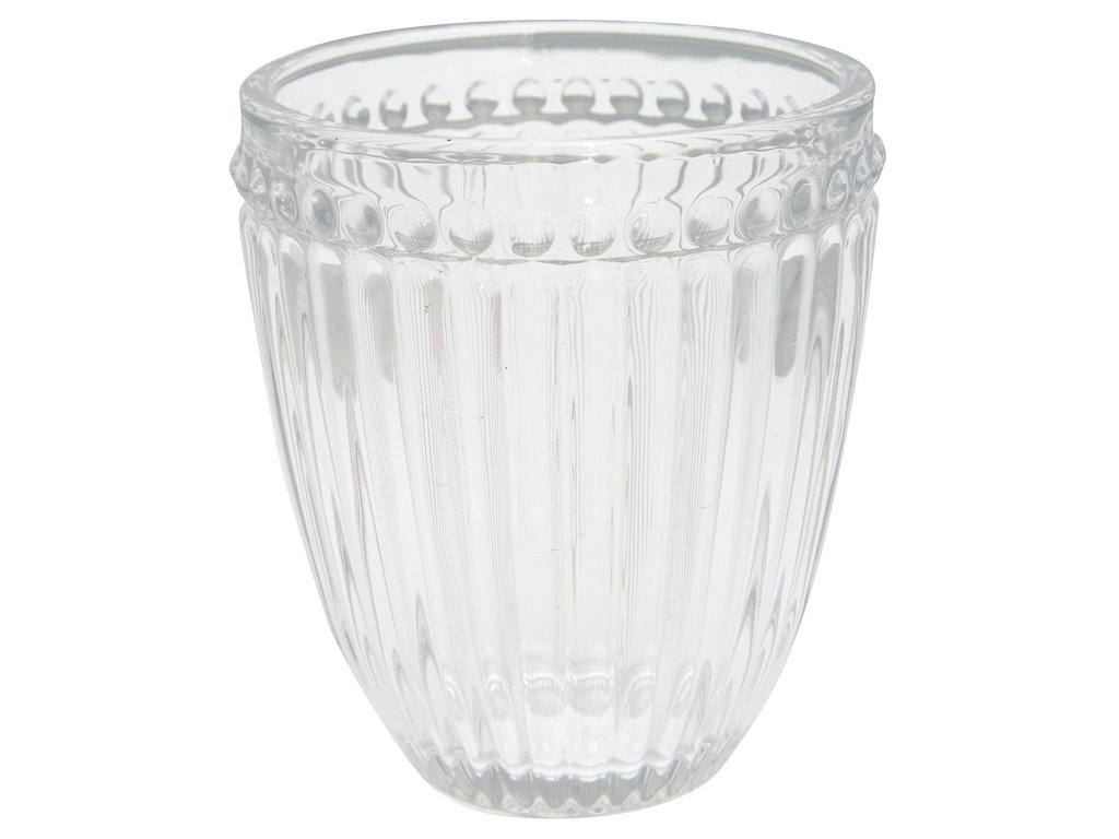 Zdobená sklenička Alice Clear je součástí kolekce Alice dánské značky GreenGate